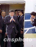 圖:泰國總理到滬 2001年10月19日 15:49 ![]() 泰國總理他信(左二)十九日中午十三時到達(dá)上海浦東機場,他將參加二十一日的APEC領(lǐng)導(dǎo)人非正式會議。中新社圖 劉殊瑾 攝 |