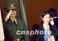 圖:中國(guó)軍警與美國(guó)女記者 2001年10月19日 16:09 ![]() 十月十九日,在上海中美首腦會(huì)談場(chǎng)外,一名美國(guó)白宮女記者忙于打手機(jī)電話,身邊的中國(guó)軍警正在向來賓行軍禮。中新社記者 賈國(guó)榮 攝 |
