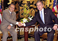 圖:美國(guó)總統(tǒng)會(huì)見馬來西亞總理 2001年10月20日 16:22 ![]() 10月20日,美國(guó)總統(tǒng)布什在上海會(huì)見馬來西亞總理馬哈蒂爾。中新社圖 |