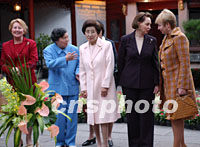 圖:APEC領(lǐng)導(dǎo)人的夫人游豫園 2001年10月20日 19:54 ![]() 出席APEC會(huì)議的經(jīng)濟(jì)體領(lǐng)導(dǎo)人配偶二十日在上海豫園游覽,中國國家主席江澤民夫人王冶坪(左二)與澳大利亞霍華德總理夫人珍妮特·霍華德(左一)、韓國總統(tǒng)金大中夫人李姬鎬,加拿大克蕾蒂安總理夫人艾琳·克蕾蒂安和俄羅斯總統(tǒng)普京夫人柳德米拉·普京(左至右)等在一起合影留念。中新社記者 王瑤 攝 |
