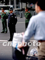 APEC花絮:天公作美 市民配合(附圖) 2001年10月20日 20:51 ![]() 出席APEC會議的各國首腦20日齊聚上海,浦東陸家嘴實行交通管制,一個騎車出行的市民從街頭整齊列隊站立的警員身邊經過,上海安全保衛(wèi)處于前所未有的一級警備狀態(tài)。中新社記者 王瑤 攝 ![]() 二十日上海APEC主會場區(qū)域地帶——浦東陸家嘴金融貿易區(qū)全面戒嚴。圖為正在執(zhí)行任務的武警。中新社記者 潘索菲 攝