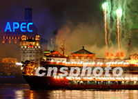 ![]() 上海黃浦江二十日晚火樹銀花,慶賀APEC峰會開幕。中新社記者 賈國榮 攝 |