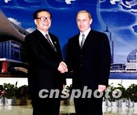 圖:江澤民迎接俄羅斯總統(tǒng) 2001年10月21日 11:32 ![]() 10月20日,中國(guó)國(guó)家主席江澤民在上海國(guó)際會(huì)議中心迎接俄羅斯總統(tǒng)普京。中新社圖 |