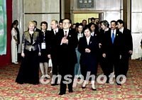 圖:江澤民夫婦舉行歡迎晚宴 2001年10月21日 11:37 ![]() 10月20日,中國國家主席江澤民和夫人王冶坪在上海國際會議中心為參加2001年亞太經(jīng)合組織(APEC)領(lǐng)導(dǎo)人非正式會議的領(lǐng)導(dǎo)人和配偶舉行歡迎晚宴。這是江澤民主席夫婦和貴賓步入宴會大廳。中新社圖 |