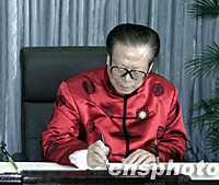 圖:江澤民簽名留念 2001年10月21日 17:29 ![]() 10月21日,出席2001年亞太經(jīng)合組織領(lǐng)導(dǎo)人非正式會(huì)議的中國(guó)國(guó)家主席江澤民在上海科技館簽名留念。中新社圖 |