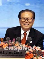 10月21日,中國國家主席江澤民在上海國際新聞中心舉行中外記者招待會。中新社圖