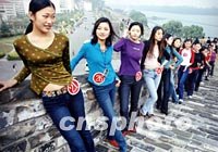 組圖:電視模特大賽在南京舉行 2001年10月30日 11:26 ![]() 一班模特十月底在南京古城墻上準(zhǔn)備拍攝外景,她們參加由中央電視臺(tái)舉辦的“通靈翠鉆”杯模特大賽江浙滬湘賽區(qū)初賽,入圍的40名選手在南京決賽后將赴北京參加全國(guó)總決賽。中新社圖 劉小楚 攝 ![]() 40名從江蘇、浙江、上海、湖南200名參賽選手中初評(píng)出來(lái)的模特,十月底在南京準(zhǔn)備參加決賽,脫穎者將赴北京中央電視臺(tái)參加全國(guó)總決賽。圖為入圍選手在南京臺(tái)城上拍攝外景。中新社圖 劉小楚 攝