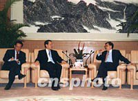 圖:龍永圖會(huì)見(jiàn)香港新聞界高層人士訪問(wèn)團(tuán) 2001年10月30日 16:37 ![]() 外經(jīng)貿(mào)部副部長(zhǎng)、中國(guó)“入世”首席談判代表龍永圖(中),二十九日會(huì)見(jiàn)來(lái)訪的香港新聞界高層人士訪問(wèn)團(tuán)時(shí)說(shuō),中國(guó)“入世”有助香港經(jīng)濟(jì)。中新社記者 張明新 攝 |