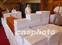 組圖:WTO部長會(huì)議開幕 多哈做好充分準(zhǔn)備 2001年11月10日 17:08 ![]() 第四屆WTO部長會(huì)議在卡塔爾首都多哈開幕, 大會(huì)組委會(huì)為參加會(huì)議的各國官員準(zhǔn)備各種會(huì)議資料。中新社記者 錢興強(qiáng) 攝 ![]() 第四屆WTO部長會(huì)議在卡塔爾首都多哈開幕,為確保大會(huì)安全,身穿阿拉伯民族服飾的保衛(wèi)人員加強(qiáng)安全保衛(wèi)措施。中新社記者 錢興強(qiáng) 攝
