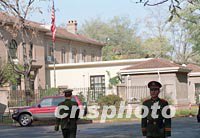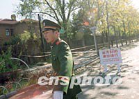 圖文:紐約空難后美國駐華大使館擴(kuò)大警戒范圍 2001年11月13日 15:37 ![]() 北京警方13日在美國駐中國大使館前增加警力并擴(kuò)大了警戒范圍,幾條通往使館門前的道路都設(shè)置了路障,禁止行人和車輛通行。美國美洲航空公司一架空中客車十二日在紐約墜毀,是否與恐怖主義襲擊有關(guān)仍有待進(jìn)一步調(diào)查。中新社圖 武仲林 攝 ![]() 美國墜機(jī)事件后,中國軍方十三日對位于北京建國門外的美國使館區(qū)加強(qiáng)安保工作!熬乓灰弧焙笠恢睂(shí)行戒嚴(yán)的美使館區(qū)內(nèi)秩序安定。中新社圖 劉殊瑾 攝