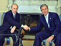 布什與普京舉行會晤 未能就反導條約達成協(xié)議 2001年11月14日 07:43 ![]() 俄美兩國首腦13日在美國開始為期3天的會談,就反導條約進行磋商。這是普京出任總統(tǒng)后首次訪美,也是他和布什自今年6月以來的第4次會晤。中新社