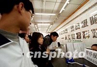 圖:入世后外語(yǔ)培訓(xùn)學(xué)校日漸火爆 2001年11月16日 16:27 ![]() 以出國(guó)留學(xué)人員外語(yǔ)培訓(xùn)聞名的北京某英語(yǔ)學(xué)校十七日如往常一樣人潮如涌,有些兩月后才開(kāi)課的班因人滿為患而暫停報(bào)名。該校口號(hào)是“挑戰(zhàn)極限,人生終將輝煌”,而入世后的中國(guó)也需要大批掌握世界領(lǐng)先技能的人才。中新社圖 劉殊瑾 攝 |