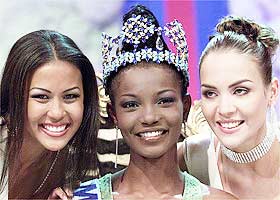 圖文:"黑姑娘"首次摘得"世界小姐"桂冠 2001年11月17日 16:11 ![]() 冠軍艾芭妮(中)、亞軍澤雷達(dá)(左)和季軍朱麗特(右)。(美聯(lián)社圖) 中新網(wǎng)香港11月17日消息:18歲的尼日利亞小姐艾芭妮·達(dá)雷戈(Agbani Darego)昨天榮登2001世界小姐寶座,從而成為第一位獲得“世界小姐”桂冠的黑人非洲小姐,她也是這一競選活動(dòng)的第51位獲勝者。 93位入選佳麗昨晚齊聚南非太陽城競爭2001年“世界小姐”,艾芭妮最終從中脫穎而出。 世界小姐艾芭妮在賽前對(duì)路透社記者說,“黑人是美麗的!彼恢眽粝氤蔀橐幻(jì)算機(jī)科學(xué)家。 阿魯巴小姐澤雷達(dá)(Zerelda Lee)獲得亞軍,蘇格蘭小姐朱麗特·簡·霍恩(Juliet-Jane Horne)獲得季軍。 據(jù)悉,在近半個(gè)多世紀(jì)以來,只有三位獲勝者來自非洲,而其中兩位是來自南非的白種人,她們分別在1958年和1974年榮獲世界小姐,第三位是1954年,來自阿拉伯國家的埃及小姐。 本屆的“世界小姐”做了一些大膽的改革,其中一項(xiàng)措施就是不再公布佳麗們的三圍數(shù)字。發(fā)起人摩里夫人表示,“比賽除了要評(píng)判參賽者的容貌與身材外,更重要的一點(diǎn)是,要對(duì)她們的學(xué)識(shí)進(jìn)行打分,僅有容貌而無內(nèi)涵的花瓶,今后將沒有資格成為‘世界小姐’,只有綜合得分最高者,才是真正的‘世界小姐’! |