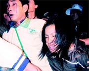 圖文:臺灣民進(jìn)黨造勢會(huì)發(fā)生內(nèi)訌 數(shù)百人互毆 2001年11月27日 09:04 ![]() 黃正男女兒黃露慧被打傷,其后男子眼角出血。(臺灣聯(lián)合報(bào)圖) 中新網(wǎng)香港11月27日消息:臺北訊,臺灣民進(jìn)黨昨晚在嘉義舉行的一場選前造勢會(huì),發(fā)生民進(jìn)黨嚴(yán)重內(nèi)訌事件,數(shù)百人先后兩度發(fā)生沖突,互相毆打造成多人受傷。 由于民進(jìn)黨“立委”候選人蔡同榮在昨天的晚會(huì)上邀請陳水扁站臺造勢,同黨籍嘉義“市長”候選人黃正男的支持者認(rèn)為未獲通知,有不被尊重的感覺,遂在造勢場合上,一路追打蔡同榮。蔡同榮的小腿因此受輕傷。 這場沖突前后發(fā)生兩次,第一次在晚間8時(shí)陳水扁進(jìn)場時(shí),黃正男的支持者為了一問究竟,當(dāng)場追打蔡同榮。第二次在陳水扁離去時(shí),場內(nèi)再次打起來。 在喊打聲中,一陣拳打腳踢,黃正男的女兒黃露慧也被打傷。 現(xiàn)場消息指,參與互毆者達(dá)三四百人之眾。 陳水扁致辭時(shí),黃正男的支持者在臺下特別以汽笛制造聲響抗議,陳水扁在臺上強(qiáng)調(diào)這場造勢晚會(huì)是為蔡同榮造勢,請大家保持“理性及風(fēng)度”。 陳水扁在臺上說話間,黃正男不顧安全人員引導(dǎo),強(qiáng)行走上演講臺左邊,遭安全人員擋在講臺樓梯旁。陳水扁在臺上大聲疾呼,黃正男表情頗為無奈,只好自行走下講臺并繞到講臺前面,但終被安全人員引導(dǎo)離開。 陳水扁在晚上8時(shí)45分結(jié)束演講,由安全人員護(hù)衛(wèi)搭車離開,部分在場民眾見狀,又朝車隊(duì)方向追逐,這時(shí)有人阻擋、有人吶喊,場面相當(dāng)混亂。 據(jù)指出,這場沖突的由來并不突然,嘉義“市長”選舉幾場造勢場合所引發(fā)的驚爆點(diǎn),黃正男擁有民進(jìn)黨提名的身分,但在幾次造勢場合中,泛綠陣營支持無黨籍“市長”候選人陳麗貞的傳言甚囂塵上,黃正男則被指為陳水扁“棄保”的對象,終于引發(fā)黃正男的支持者不滿。 尤其在24日晚,陳水扁的老師、臺大教授李鴻禧在嘉義為陳麗貞站臺。當(dāng)時(shí)李鴻禧強(qiáng)調(diào),民進(jìn)黨推出的“市長”候選人根本“毫無勝算”,他自稱身為阿扁的老師,當(dāng)然知道陳水扁支持的是陳麗貞。 |
