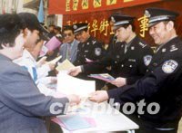 圖:北京警方向市民發(fā)放嚴打宣傳材料 2001年12月05日 15:19 ![]() 北京警方日前在街頭向市民發(fā)放嚴打宣傳材料,以取得百姓對嚴打整治斗爭的支持。中新社圖 黃然 攝 |