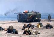 假想解放軍登陸 臺軍今早在澎湖實(shí)彈演習(xí)(圖) 2001年12月27日 15:58 臺軍進(jìn)行沙灘演習(xí)(資料圖片) 中新網(wǎng)香港12月27日消息:臺北訊,臺灣軍方的澎湖“國防司令部”,今天清晨實(shí)施反登陸實(shí)彈演習(xí),操演過程中試射各種火炮。 澎湖“國防司令部”今早集結(jié)部隊(duì),在西嶼外海展開“聯(lián)信240號”演習(xí)。其間進(jìn)行沙盤推演,圖上作業(yè)標(biāo)定目標(biāo),隨即用軍方的105、155榴彈炮進(jìn)行對海射擊。 之后,臺軍使用40防空炮對空射擊,進(jìn)行擊機(jī)的操演。 臺灣軍方表示,操演是以實(shí)兵實(shí)彈射擊,已驗(yàn)證臺軍的陸海空三軍聯(lián)合作戰(zhàn)能力。 有參加演習(xí)的軍官聲稱,此次軍事操演的目的是假想解放軍在臺登陸,臺軍則以榴炮和機(jī)槍炮“綿密的射擊”,“阻止”解放軍登陸。 臺軍方聲稱,演習(xí)中,整個(gè)反舟波火炮射擊都命中目標(biāo)。 |