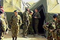 圖:150名國(guó)際維和士兵抵達(dá)喀布爾 2002年01月03日 16:33 ![]() 大約150名國(guó)際維和部隊(duì)士兵2日已抵達(dá)阿富汗首都喀布爾,其他部隊(duì)正源源不斷往這里進(jìn)發(fā)。在這150人的先遣部隊(duì)中,125人屬于英國(guó)軍隊(duì),其中有7名女兵;其他25人則分別來自德國(guó)、法國(guó)、意大利等歐洲國(guó)家。國(guó)際維和部隊(duì)的總部就設(shè)在喀布爾市區(qū)美國(guó)大使館附近。中新社圖 |