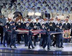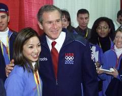第十九屆冬季奧林匹克運(yùn)動(dòng)會(huì)開幕式組圖 2002年02月09日 11:26 ![]() 本屆冬季奧運(yùn)會(huì)會(huì)旗入場。(美聯(lián)圖) ![]() 美國運(yùn)動(dòng)員代表和紐約的消防員、警察代表持世貿(mào)中心破損的美國星條旗入場。(美聯(lián)圖) 冬奧會(huì)開幕式會(huì)場鳥瞰。 ![]() 美國總統(tǒng)布什開幕式前與美籍華裔知名花樣滑冰選手關(guān)穎珊合影。