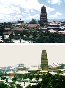 新聞背景知識:阿育王寺和中國的法門寺 2002年02月20日 20:03 ![]() 不同季節(jié)的法門寺 中新網(wǎng)北京2月20日消息:釋迦牟尼佛在世時,信眾就對佛身體上任何部分都視為圣物。佛涅槃后,周邊八個小國的國王曾率軍隊爭奪舍利,后被一個香姓婆羅門勸解,并主持將舍利分成八份,各自請回供奉。 釋迦牟尼佛涅槃后一百多年,古印度有個國王叫阿育王的崇信佛教,曾廣泛建立佛塔以供奉佛舍利。人們將這些塔統(tǒng)稱為阿育王塔。 據(jù)隋《歷代三寶記》、唐《破邪論》等佛典記載古印度阿育王曾在很大的地域范圍內建筑佛舍利塔。據(jù)傳中國境內有十九處,都稱中國江漢左右、關隴西東有阿育王塔。扶風阿育王塔即為其一。法門寺初建于東漢年間,先有佛塔后建佛寺,所以最初便因阿育王塔而名阿育王寺,后唐高祖李淵賜名法門寺。 唐代法門寺寶塔為四級木塔,明代隆慶年間(公元1567—1572年)唐代木塔崩塌。明神宗萬歷七年至三十七年(1579—1609)重建八角十三級磚塔一座,塔高四十七米。一九八一年八月二十四日在邊綿霪雨中明代磚塔塔身自上而下崩塌一半。 一九八六年十月,文物部門決定撥款重修寶塔。一九八七年四月在清理塔基時,發(fā)現(xiàn)唐代地宮并出土佛指舍利和大量唐代稀世珍寶。唐朝幾代帝王都曾予以修葺。懿宗時又加以擴建。地宮全長21.12m,面積為31.84m2。整個地宮由踏步臺階、平臺、甬道、前室、中室、后室、秘龕七部分組成,以五道石門相隔。這個地宮曾得到唐王朝歷代皇帝的重視,給予多次修葺。