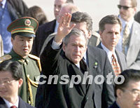 圖:美國(guó)總統(tǒng)布什抵京 2002年02月21日 12:51 ![]() 美國(guó)總統(tǒng)布什二十一日上午抵達(dá)北京首都國(guó)際機(jī)場(chǎng),開始為期兩天的工作訪問。中新社圖 毛建軍 攝