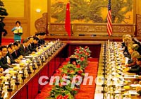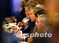 ![]() 美國總統(tǒng)布什二十一日中午在北京出席兩國首腦會談。中新社記者 賈國榮 攝