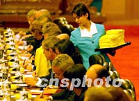 圖:服務員為布什送毛巾 2002年02月21日 15:58 ![]() 一名北京人民大會堂的服務員,二十一日中午向出席中美首腦會談的布什總統(tǒng)送上熱毛巾。中新社記者 賈國榮 攝