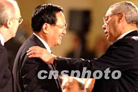 圖:唐家璇外長與鮑威爾交談 2002年02月21日 16:12 ![]() 中國外交部長唐家璇二十一日在北京與隨布什總統(tǒng)訪華的美國國務卿鮑威爾交談。中新社記者 賈國榮 攝