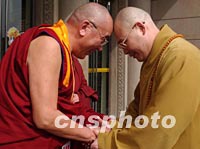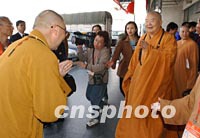 組圖:法門(mén)寺佛指舍利臺(tái)灣迎請(qǐng)團(tuán)抵達(dá)西安 2002年02月21日 19:49 ![]() 由臺(tái)灣佛教法師、信眾組成的法門(mén)寺佛指舍利赴臺(tái)灣地區(qū)瞻禮(供奉)恭迎團(tuán),二十一日下午乘機(jī)抵達(dá)西安咸陽(yáng)國(guó)際機(jī)場(chǎng)。圖為恭迎團(tuán)在機(jī)場(chǎng)受到熱烈歡迎。中新社記者 錢(qián)興強(qiáng) 攝 ![]() 法門(mén)寺將舉行佛指舍利赴臺(tái)灣地區(qū)瞻禮(供奉)法會(huì),來(lái)自大陸、港臺(tái)以及各地的佛教信眾匯聚西安。圖為中國(guó)著名法師圣輝(右)和中國(guó)藏學(xué)院副院長(zhǎng)那倉(cāng)活佛(左)親切見(jiàn)面。中新社記者 錢(qián)興強(qiáng) 攝
