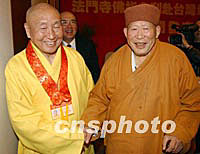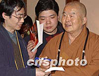 圖文:法門寺佛指舍利赴臺(tái)供奉發(fā)布會(huì)在西安舉行 2002年02月21日 22:08 ![]() 法門寺佛指舍利赴臺(tái)供奉新聞發(fā)布會(huì),日前在西安喜來登大酒店舉行,中國佛教協(xié)會(huì)等有關(guān)人士和臺(tái)灣佛教人士以及來自大陸、港臺(tái)的眾多記者參加了發(fā)布會(huì)。圖為臺(tái)灣惟覺法師與法門寺凈一方丈在發(fā)布會(huì)上。中新社記者 錢興強(qiáng) 攝 ![]() 法門寺佛指舍利赴臺(tái)供奉新聞發(fā)布會(huì),日前在西安喜來登大酒店舉行,中國佛教協(xié)會(huì)等有關(guān)人士和臺(tái)灣佛教人士以及來自大陸、港臺(tái)的眾多記者參加了發(fā)布會(huì)。圖為臺(tái)灣星云法師為賓客簽書。中新社記者 錢興強(qiáng) 攝
