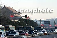 圖:中美國(guó)旗飄揚(yáng)天安門(mén) 2002年02月22日 09:21 ![]() 美國(guó)總統(tǒng)布什訪華,二十二日的北京天安門(mén)飄揚(yáng)著中美國(guó)旗,路上行速著中美合作的環(huán)保清潔燃料巴士。中新社記者 賈國(guó)榮 攝