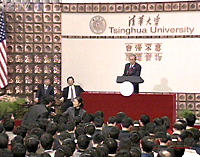 組圖:布什在清華大學演講后答學生提問(一) 2002年02月22日 11:15 ![]() ![]() ![]() ![]() ![]() 布什在清華大學演講,350名學生參加。演講后部分清華大學的學生向布什總統(tǒng)提問。