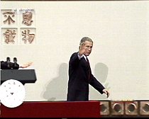 圖:布什總統(tǒng)結(jié)束回答學生提問 2002年02月22日 11:40 ![]()