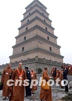 圖:兩岸佛教人士參觀大雁塔 2002年02月22日 13:52 ![]() 在西安參加法門寺佛指舍利赴臺灣地區(qū)瞻禮(供奉)活動的兩岸佛教人士,二十二日上午來到西安大雁塔參觀。中新社記者 錢興強(qiáng) 攝