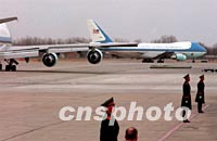 圖:兩駕空中一號(hào)離京 2002年02月22日 19:26 ![]() 美國(guó)總統(tǒng)布什二十二日飛離北京,兩駕空中一號(hào)專機(jī)先后起飛。中新社記者 賈國(guó)榮 攝