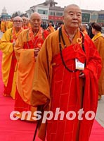 圖:星云法師率臺(tái)灣佛家弟子出席大法會(huì) 2002年02月22日 19:54 ![]() 法門寺佛指舍利赴臺(tái)灣地區(qū)瞻禮(供奉)法會(huì)儀式二十二日在西安法門寺舉行,來(lái)自臺(tái)灣的恭迎團(tuán),由大陸佛教人士組成的護(hù)送團(tuán)以及護(hù)法團(tuán)等各界有關(guān)人士千余人匯集法門寺。圖為星云法師率臺(tái)灣佛家弟子出席大法會(huì)。中新社記者 錢興強(qiáng) 攝