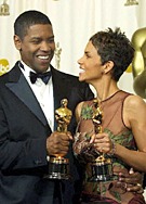 2002奧斯卡讓黑人影帝影后大出風(fēng)頭寫天下(圖) 2002年03月25日 15:49 ![]() 法新圖 中新網(wǎng)香港3月25日消息:奧斯卡金像獎今天頒出,此次出現(xiàn)了第一次影帝、影后獎項(xiàng)同樣頒給黑人影星丹佐-華盛頓及哈利-貝莉的空前盛況,入圍八項(xiàng)的《美麗境界》最后抱得最佳導(dǎo)演及最佳影片等4獎,將原本提名最多項(xiàng)的《魔戒首部曲:魔戒現(xiàn)身》飲恨落敗。 《怪物舞會》的哈利-貝莉擊敗原本呼聲最高的《意外邊緣》西西斯派克,成為奧斯卡影史上第一位黑人影后。她在上臺領(lǐng)獎時激動得泣不成聲,獲得全場來賓起立鼓掌。 《訓(xùn)練日》的丹佐-華盛頓則是自1963年以來的第二位奧斯卡黑人影帝。以《美麗境界》尋求連莊影帝的羅素-克洛,終于還是抵不過人氣指數(shù)一級棒的丹佐-華盛頓。 據(jù)“中央社”報道,第74屆奧斯卡金像獎今天在好萊塢柯達(dá)劇場登場,天王巨星湯姆-克魯斯率先上臺為電影對人類生命的啟發(fā)及貢獻(xiàn)做出開場白。 晚會主持人黑人女星琥碧戈柏充份發(fā)揮喜劇天份,模仿《紅磨坊》妮可基嫚的紅伶造型從天而降,為典禮開場創(chuàng)造驚喜。 今天頒發(fā)的第一個奧斯卡獎項(xiàng)《最佳女配角》果真如大多數(shù)媒體預(yù)期,由《美麗境界》珍妮佛康納莉贏得。她的得獎也讓此片吃下一顆定心丸,又連續(xù)拿下“最佳改編劇本”、“最佳導(dǎo)演”與“最佳影片”等大獎,風(fēng)光不已。 本屆奧斯卡創(chuàng)新增加的“最佳動畫片”獎項(xiàng),一如外界預(yù)期由叫好又叫座的《史瑞克》獲得。去年另一部備受歡迎的動畫片《怪獸公司》則拿下“最佳電影歌曲”。 相關(guān)報道:圖:首位非洲裔奧斯卡最佳女主角泣不成聲 相關(guān)報道:圖文:2002奧斯卡金像獎今頒出新晉影帝 相關(guān)報道:圖:哈利·貝莉成奧斯卡金像獎最佳女主角 相關(guān)報道:新聞資料:2002奧斯卡部分得獎名單新鮮揭曉 相關(guān)報道:漂泊37年 奧斯卡金像獎今日首度在家頒獎 相關(guān)報道:組圖: 第74屆奧斯卡頒獎現(xiàn)場群星璀璨