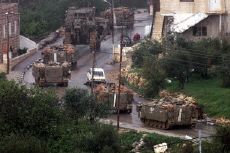 圖文:中東局勢(shì)驟變 以色列宣布阿拉法特為敵人 2002年03月29日 14:28 ![]() 以軍坦克開(kāi)入拉馬拉包圍阿拉法特總部(法新社) 中新網(wǎng)北京3月29日消息:以色列今天宣布巴勒斯坦領(lǐng)導(dǎo)人阿拉法特為敵人,并派兵襲擊他在西岸城市拉馬拉的總部。 巴勒斯坦安全部隊(duì)和以色列軍隊(duì)爆發(fā)槍?xiě)?zhàn)。以軍一輛推土機(jī)將阿拉法特總部大院的外墻撞開(kāi)一個(gè)大洞,以軍坦克向其辦公室大樓發(fā)射炮彈,引起大火。 巴勒斯坦安全官員說(shuō),阿拉法特當(dāng)時(shí)就在總部大樓內(nèi),但是他沒(méi)有受到傷害。 以色列總理沙龍?jiān)谂e行內(nèi)閣會(huì)議后發(fā)表電視講話說(shuō):“政府決定視恐怖聯(lián)盟的頭目阿拉法特為敵人,現(xiàn)階段必須將他孤立。” 沙龍還說(shuō):“以色列軍隊(duì)現(xiàn)在已經(jīng)進(jìn)入阿拉法特在拉馬拉的總部,以軍將在巴勒斯坦民族權(quán)力機(jī)構(gòu)的全境追捕他們! 以色列國(guó)防部長(zhǎng)埃利澤稱拉馬拉市為“恐怖之都”。埃利澤表示,一色了無(wú)意“重新占領(lǐng)巴勒斯坦領(lǐng)土”。他說(shuō):“我們唯一想要做的就是打擊恐怖主義的基礎(chǔ)! 巴勒斯坦內(nèi)閣部長(zhǎng)艾里卡特說(shuō),以色列的行動(dòng)等于是宣布對(duì)巴勒斯坦的“全面戰(zhàn)爭(zhēng)”。艾里卡特在拉馬拉的總部說(shuō):“這顯然是對(duì)巴勒斯坦人的宣戰(zhàn)! 艾里卡特說(shuō):“奉行國(guó)際恐怖主義的以色列政府已經(jīng)宣布全面戰(zhàn)爭(zhēng)。沙龍意圖摧毀巴勒斯坦民族權(quán)力機(jī)構(gòu)與和平進(jìn)程。“