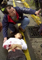 組圖:臺灣“三三一”地震臺北災(zāi)難現(xiàn)場 2002年04月01日 09:02 臺北百層金融大樓起重機(jī)墜落現(xiàn)場。(法新) ![]() 警察查看從工地墜落的起重機(jī)。(法新) ![]() 一名男童在地震中受傷。(法新) ![]() 一駕車女子受傷,等待接受救治。(美聯(lián)) ![]() 救援人員搶救一名傷者。(法新)