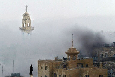 圖:以色列士兵與女友分別前相擁而吻 2002年04月03日 14:17 圖為色列士兵與女友相擁而吻 起火的教堂 在耶路撒冷市和西岸城市伯利恒之間地一處檢查站,一名以色列士兵與女友相擁而吻。以軍進(jìn)入了古城伯利恒,并向教堂開(kāi)火,一名神父被殺,另外六名修女受傷。法新圖