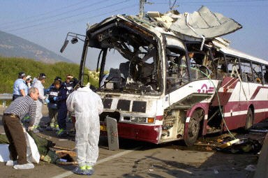 圖文:以色列海法公車遭自殺炸彈襲擊10人死亡 2002年04月10日 14:04 ![]() 圖為被炸彈襲擊的公車。法新社圖 中新網(wǎng)北京4月10日消息:法新社援引以色列醫(yī)院方面的消息說,今天在以色列北部城市海法的公車自殺炸彈襲擊事件中,至少有10人死亡,另有20人受傷。 當(dāng)?shù)剀姺诫娕_的報(bào)道也援引紅十字會性質(zhì)組織的消息說,至少有10人死亡。據(jù)目擊者說,這次爆炸將遇襲公車的車頂炸穿。 而路透社的報(bào)道則說,上述緊急救援組織的的官員說,有8人在爆炸中死亡。以色列的媒體早先報(bào)道的死亡數(shù)字為10人。 報(bào)道還援引警方和救援工作者的消息說,一名自殺炸彈襲擊者今天上午交通高峰期在一輛擁擠的公車上引爆炸彈,造成至少8人死亡,12人受傷。 哈馬斯組織軍事派別宣稱對海法自殺炸彈襲擊負(fù)責(zé) 中新網(wǎng)北京4月10日消息:卡塔爾半島電視臺報(bào)道說,哈馬斯組織的軍事派別今天宣布對發(fā)生在以色列北部城市海法的自殺炸彈襲擊事件負(fù)責(zé)。 哈馬斯組織的“埃澤丁——卡薩姆旅”打電話給半島電視臺駐西岸城市拉姆安拉的辦公室,宣稱對此事負(fù)責(zé)。 一名自殺炸彈襲擊者今天上午交通高峰期在海法市一輛擁擠的公車上引爆炸彈,造成至少10人死亡,約20人受傷。 以色列總理沙龍的一名助手聲稱,巴勒斯坦領(lǐng)導(dǎo)人阿拉法特應(yīng)對這起恐怖襲擊事件負(fù)責(zé)。 巴勒斯坦:海法襲擊是對沙龍?bào)a臟戰(zhàn)爭的“自然反應(yīng)” 中新網(wǎng)北京4月10日消息:巴勒斯坦政府表示,今天發(fā)生在以色列城市海法的公車爆炸事件是對以色列總理沙龍“骯臟戰(zhàn)爭的自然反應(yīng)”。 據(jù)法新社報(bào)道,巴勒斯坦內(nèi)閣秘書阿卜杜拉赫曼說:“沙龍對此負(fù)有責(zé)任。他是對巴勒斯坦人民和民族權(quán)力機(jī)構(gòu)發(fā)起骯臟侵略的人! 阿卜杜拉赫曼還說:“這是對這場骯臟戰(zhàn)爭和發(fā)生在難民營的事件的自然反應(yīng)! 哈馬斯組織的軍事派別今天打電話給半島電視臺駐西岸城市拉姆安拉的辦公室,宣稱對此海法的自殺炸彈襲擊事件負(fù)責(zé)。 以色列官員稱阿拉法特應(yīng)對自殺炸彈襲擊負(fù)責(zé) 中新網(wǎng)北京4月10日消息:以色列官員今天說,巴勒斯坦領(lǐng)導(dǎo)人阿拉法特應(yīng)為海法市的自殺炸彈襲擊事件負(fù)責(zé)。 據(jù)法新社報(bào)道,以色列總理沙龍的助手說:“亞瑟·阿拉法特對這起恐怖襲擊事件負(fù)責(zé),這再次證明他對恐怖主義無所作為,相反他在鼓勵(lì)這種行為! 這名以色列官員還說,這次襲擊事件“只能證明繼續(xù)3月29日開始的對恐怖主義基礎(chǔ)組織的軍事行動(dòng)是合理的”。 自從3月29日海法市發(fā)生自殺炸彈襲擊事件以來,以色列就對西岸地區(qū)發(fā)動(dòng)大規(guī)模軍事行動(dòng),并將巴勒斯坦領(lǐng)導(dǎo)人阿拉法特圍困在拉姆安拉的總部。