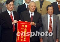 圖:董建華會見臺灣中國統(tǒng)一聯(lián)盟參訪團 2002年04月10日 16:56 ![]() 香港特區(qū)行政長官董建華,4月10日在香港禮賓府會見臺灣中國統(tǒng)一聯(lián)盟“一國兩制參訪團”,團長王津平(左一)向董建華贈送錦旗。中新社記者 任晨鳴 攝