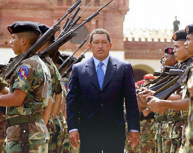 圖:委內(nèi)瑞拉10名高級(jí)軍官發(fā)表聲明要求總統(tǒng)下臺(tái) 2002年04月12日 10:57 委內(nèi)瑞拉10名高級(jí)軍官11日發(fā)表聲明,要求總統(tǒng)查韋斯下臺(tái).圖為2002年2月4日委內(nèi)瑞拉總統(tǒng)在首都加拉加斯檢閱軍隊(duì)。法新圖