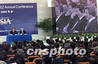 ![]() 博鰲亞洲論壇首屆年會(huì)十二上午在海南博鰲開幕,日本首相小泉純一郎在開幕式上發(fā)表主旨演講。中新社記者 滿會(huì)喬 攝