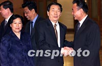 圖:朱镕基離京出訪土耳其等三國 2002年04月15日 14:40 ![]() 中國國務(wù)院總理朱镕基十五日離開北京,前往土耳其、埃及和肯尼亞進(jìn)行正式訪問。國務(wù)院副總理吳邦國等在北京人民大會堂送行。中新社記者 毛建軍 攝