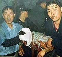 圖:滿身鮮血纏滿繃帶的乘客被送往醫(yī)院 2002年04月15日 17:21 ![]() ![]() 在韓國釜山附近金海機(jī)場(chǎng)撞山墜毀的中國航班上至少有54名生還者。圖為數(shù)名滿身鮮血和纏滿繃帶的乘客被救援人員背著送往醫(yī)院。直升機(jī)和救援車輛無法進(jìn)入現(xiàn)場(chǎng)。
