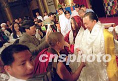 ![]() 臺(tái)灣名人陳履安之子日前在京新婚,來(lái)自尼泊爾、臺(tái)灣等地的佛徒趕到北京,參加陳宇廷和藏族姑娘央金拉姆的婚禮,爭(zhēng)相為新婚人送哈達(dá)。作者:王麗南