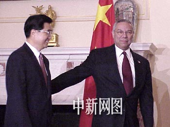 胡錦濤晤鮑威爾稱美應排除干擾維護中美關(guān)系大局 2002年05月01日 19:53 ![]() 美國當?shù)貢r間四月三十日晚,中國國家副主席胡錦濤與美國國務卿鮑威爾舉行會晤。是日,鮑威爾在國務院大樓設晚宴款待胡錦濤。中新社 徐德金/攝 中新社華盛頓四月三十日電 中國國家副主席胡錦濤三十日應邀出席了美國國務卿鮑威爾舉行的晚宴,并同他進行了會晤。 鮑威爾說,美方高度重視美中關(guān)系,胡錦濤副主席訪美為雙方增進相互了解、推進美中關(guān)系提供了重要機會。美中兩國就雙邊關(guān)系和重大國際及地區(qū)問題保持高層接觸至關(guān)重要。近來雙方在反恐、經(jīng)貿(mào)、科技等諸多領(lǐng)域進行了良好的合作。美中兩國還有許多可以進一步合作的領(lǐng)域。 胡錦濤說,自江澤民主席和布什總統(tǒng)上海和北京會晤以來,中美關(guān)系總的發(fā)展勢頭是好的。中方十分重視發(fā)展中美關(guān)系。發(fā)展健康、穩(wěn)定的中美關(guān)系符合兩國人民的根本利益,也有利于世界的和平、穩(wěn)定與發(fā)展。 胡錦濤指出,近來中美關(guān)系受到一些干擾。這些干擾大多是圍繞中美關(guān)系中最重要、最敏感的臺灣問題出現(xiàn)的。美方應堅持一個中國政策,恪守中美三個聯(lián)合公報原則,以實際行動排除干擾,努力維護中美關(guān)系大局。 鮑威爾說,美方理解中方對臺灣問題的重視以及這一問題對中國政府和人民的高度敏感性。美國遵守美中三個聯(lián)合公報。堅持一個中國政策是美長期以來對華政策的標志。 雙方還就發(fā)展中美經(jīng)貿(mào)合作、擴大各領(lǐng)域交流及一些共同關(guān)心的國際和地區(qū)問題交換了意見。 同日,胡錦濤還分別會見了美國財政部長奧尼爾和商務部長埃文斯。