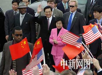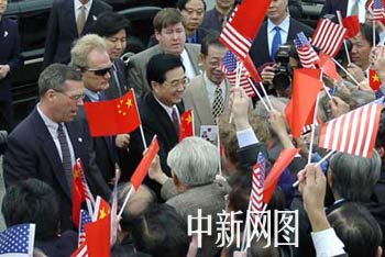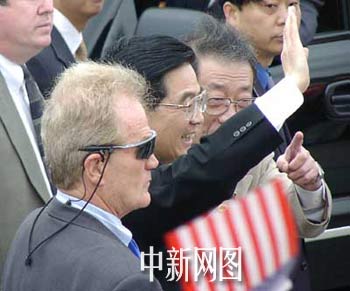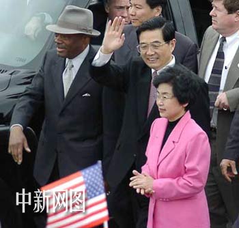 組圖:胡錦濤抵達舊金山 受華人華僑歡迎 2002年05月03日 09:48 ![]() 中國國家副主席胡錦濤一行五月二日中午抵達美國舊金山市。舊金山市黑人市長布朗(左)到機場迎接胡錦濤和夫人來訪。中新社 陳建/攝 ![]() 二百多名當?shù)厝A僑華人手舉中美兩國國旗,在機場熱情迎接胡錦濤的到來。胡錦濤與夫人劉永清在舊金山市市長布朗(左)的陪同下,向歡迎人群揮手致意。中新社 陳建/攝 ![]() 胡錦濤走下專機舷梯后,并沒在美國保安的引導(dǎo)下直接上車,而是向相反方向,走近歡迎人群,高興地與僑胞們握手。中新社 陳建/攝 ![]() 中國國家副主席胡錦濤五月二日中午抵達美國舊金山市。圖為胡錦濤副主席向歡迎人群揮手致意。中新社 陳建/攝