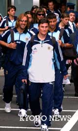 圖文:阿根廷國(guó)家隊(duì)抵達(dá)日本 開始備戰(zhàn)世界杯 2002年05月16日 14:28 ![]() 薩內(nèi)蒂(前)、巴蒂斯圖塔(左)等阿根廷國(guó)腳到達(dá)日本參加世界杯(共同社16日上午攝于成田機(jī)場(chǎng))