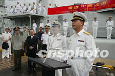圖:中國海軍環(huán)球航行訪問艦艇編隊在新加坡 2002年05月23日 19:05 ![]() 中國海軍首次環(huán)球航行訪問艦艇編隊指揮員丁一平少將,二十三日上午在新加坡海軍基地樟宜港致答辭,感謝新加坡各界的熱烈歡迎。中新社圖 躍勝岐 攝